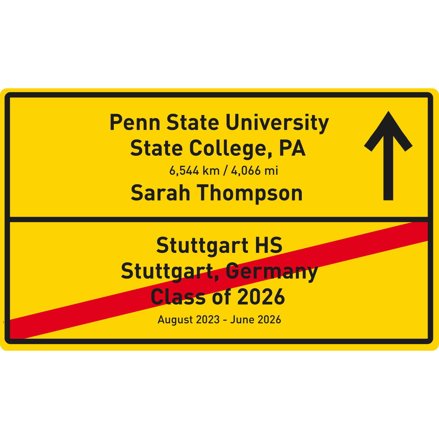 Yellow Edge Designs (YED) specializes in personalized aluminum signs inspired by the iconic yellow town signs of Germany. Based in Stuttgart and proudly serving the local community, YED offers high-quality, custom-designed signs that commemorate where you’ve been—and where you’re going.